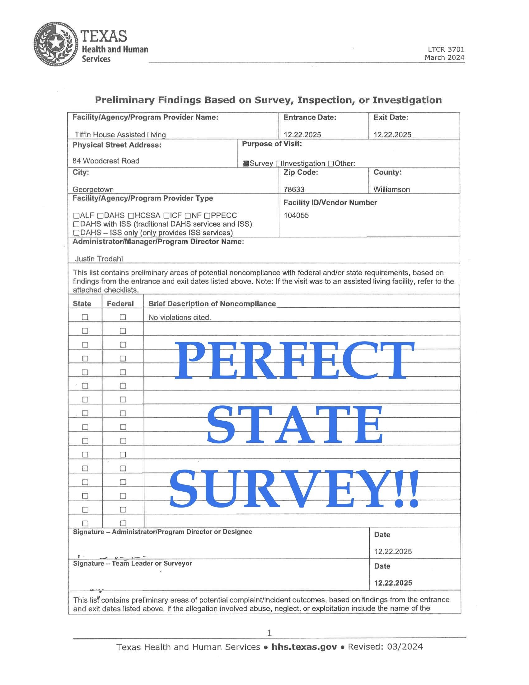 - Perfect state of Texas survey score (Click here to view)