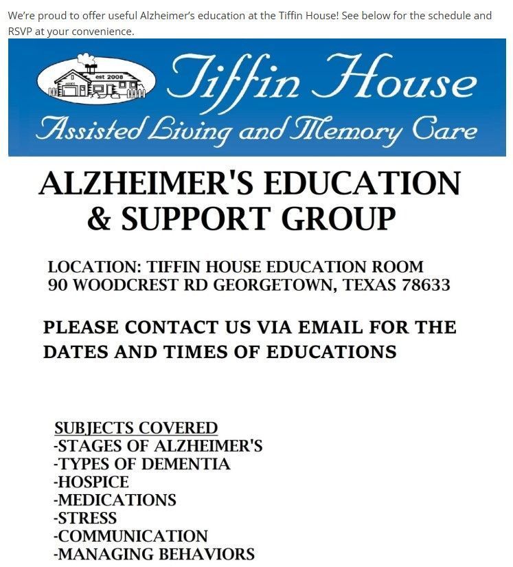 At Tiffin House-Assisted Living & Memory Care, we're committed to providing educational resources for seniors, families, and caregivers in the Central Texas area. Our goal is to equip you with the information you need to make informed decisions about assisted living and memory care. From understanding Alzheimer’s and dementia to finding local support groups, we provide guidance every step of the way. We also offer tools and information on financial planning and understanding care costs, helping you navigate the complexities of senior care with confidence and peace of mind.